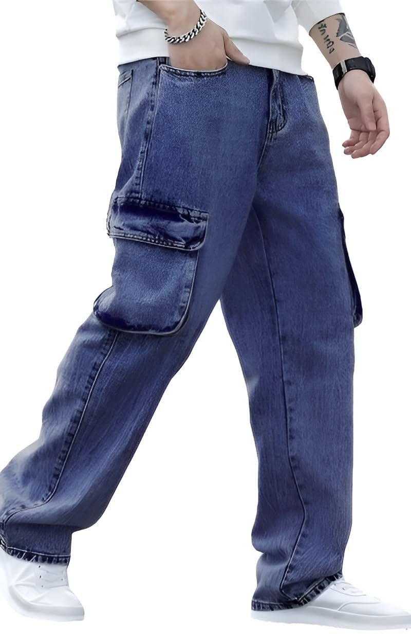 Ben Martin Men’s Denim Cotton Cargo Jeans || Stretchable Baggy Fit || High Waist Loose Cargos for Men with Box Pockets || Stylish Gen-Z Streetwear