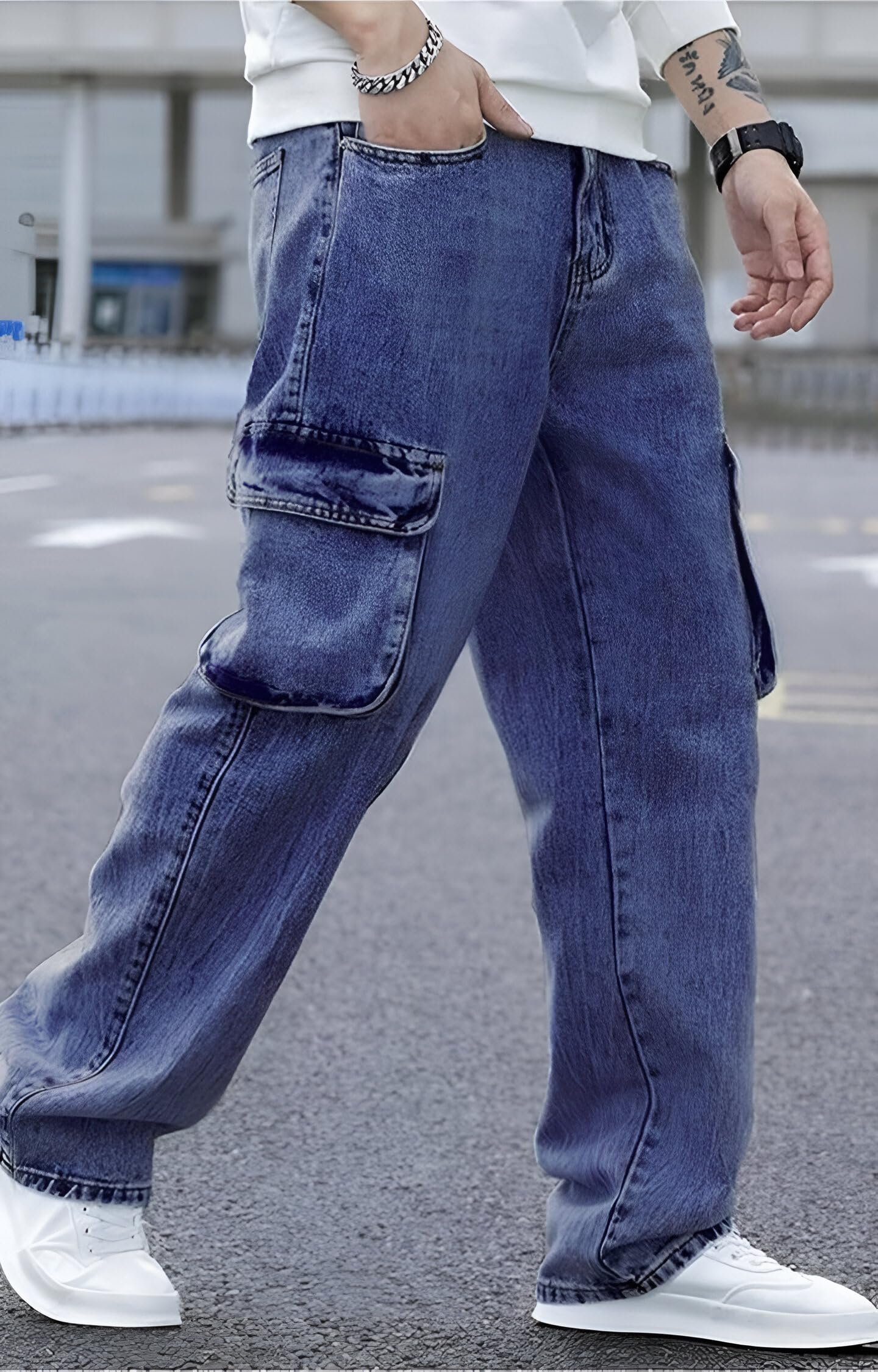 Ben Martin Men's Denim Cotton Cargo Jeans || Stretchable Baggy Fit || High Waist Loose Cargos for Men with Box Pockets || Stylish Gen-Z Streetwear quantity