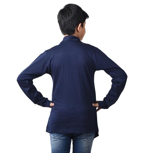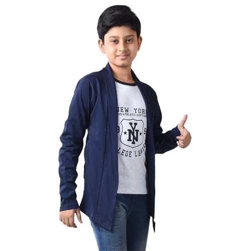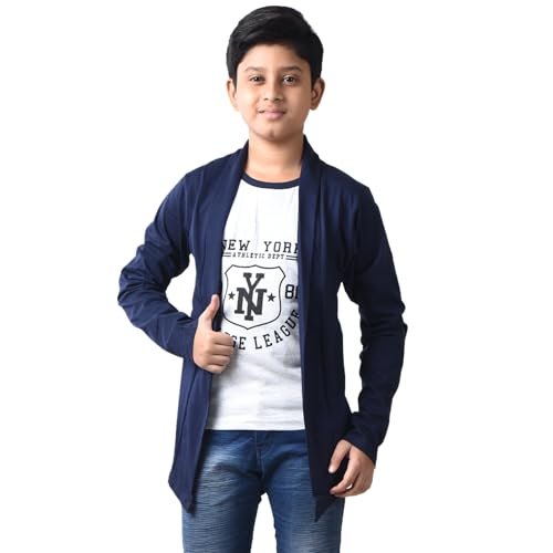 / Boys Cotton Printed Long Sleeve NY Navy T-Shirt with Attached Shrug Jacket