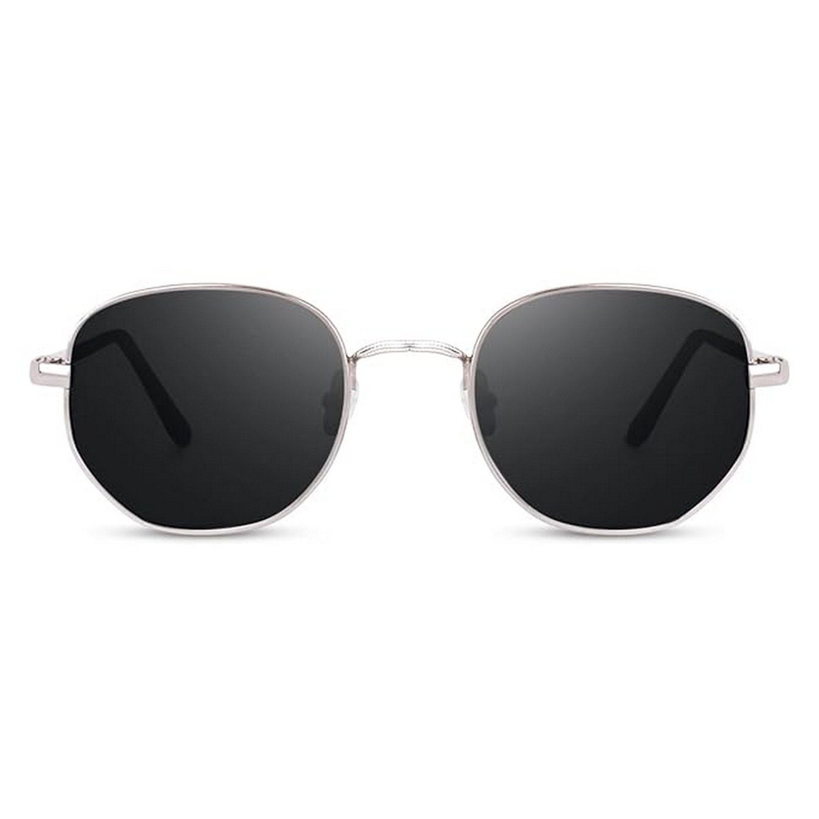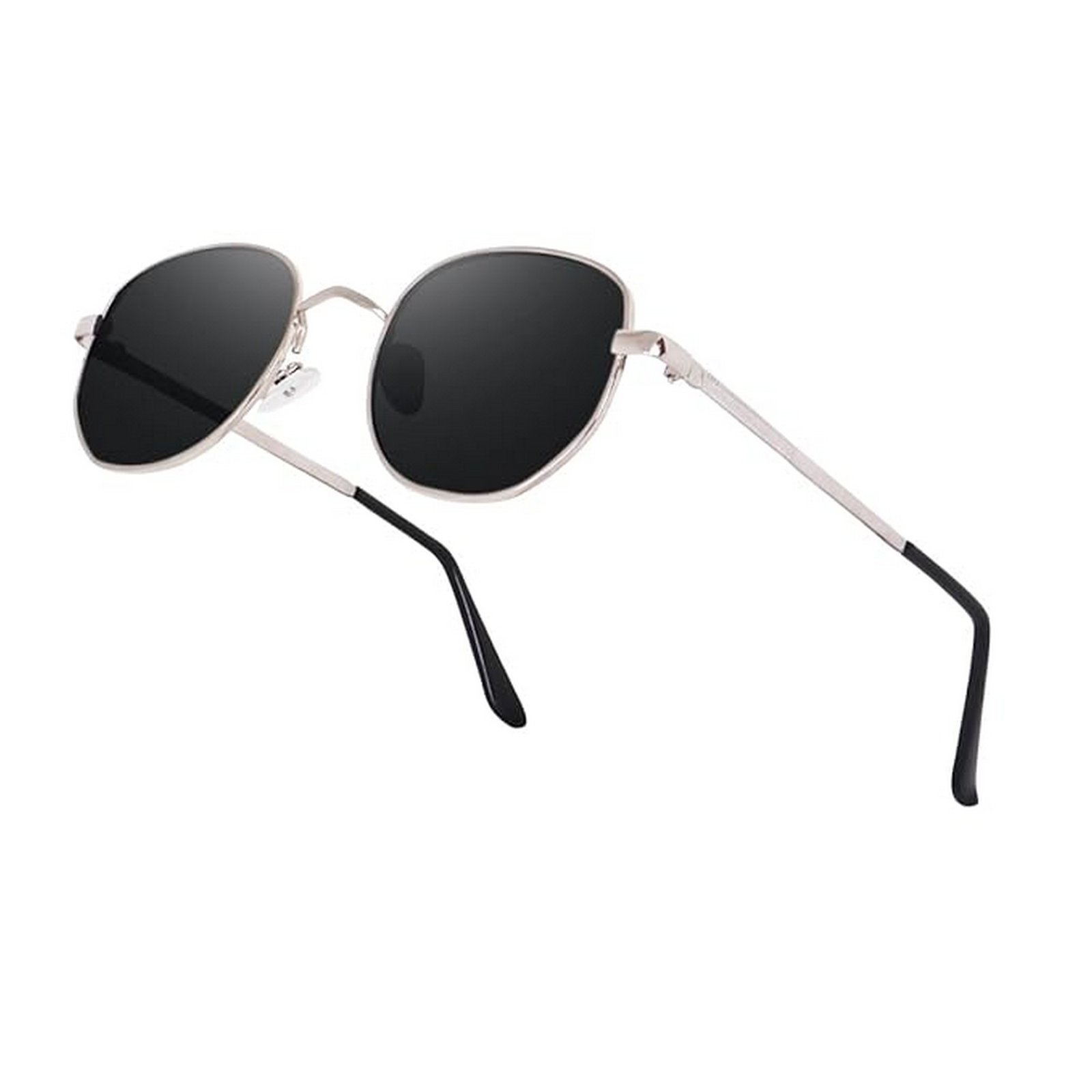 / Dervin UV Protected Hexagonal Sunglasses for Men and Women (Silver-Black)