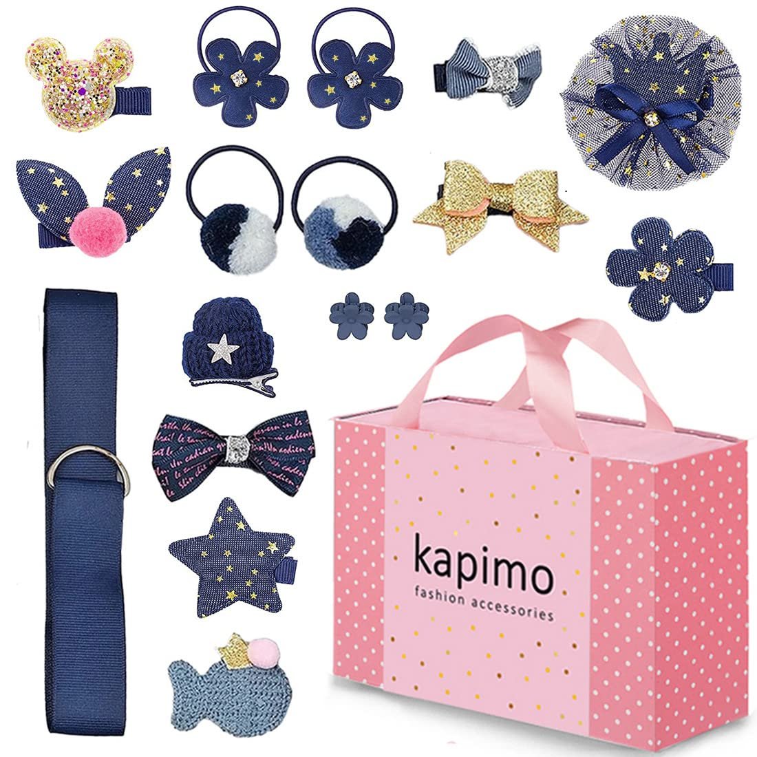 - Assorted 18 pcs hair accessories for girls gift set for baby girl kids toddlers women. Includes baby girl hair accessories like baby hair clips, hairbands for kids girl, hair clips for baby girls, hair pins for girls, hair bow for girls, baby clips and hair accessories alike