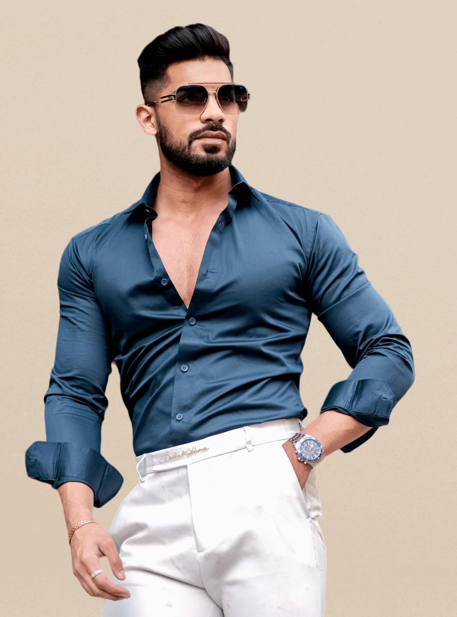 IndoPrimo Men’s Satin Shirt with Spread Collar Neck Line Solid Pattern Full Sleeves Regular Fit Western Style