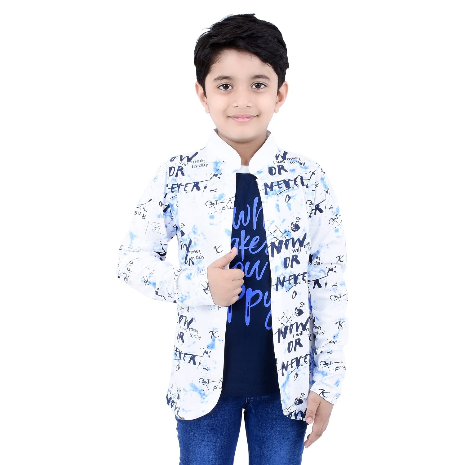 Jam & Sugar Boys Cotton Printed T-Shirt with Attached Shrug Jacket – Full Sleeves