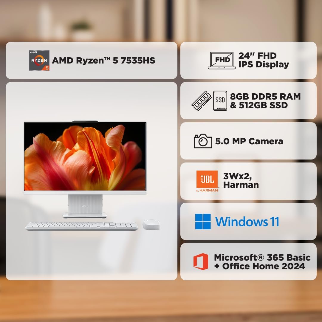 Lenovo Ideacentre AIO AMD Ryzen 7 7735HS 23.8" FHD IPS All-In-One Desktop(16GB RAM/512GB SSD/Win11 quantity