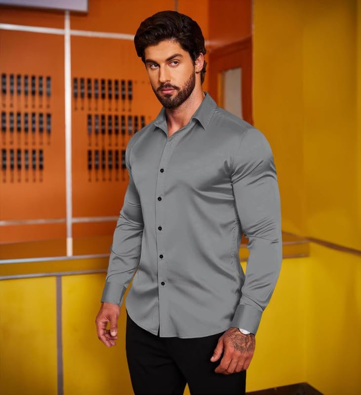 / Men’s Satin Formal Shirt for Party and Office Wear | Long Sleeve Slim Fit Shiny Dress Shir