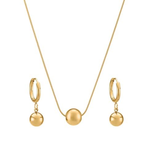 PALMONAS Golden Orb Necklace & Earring Jewellery Set For Women