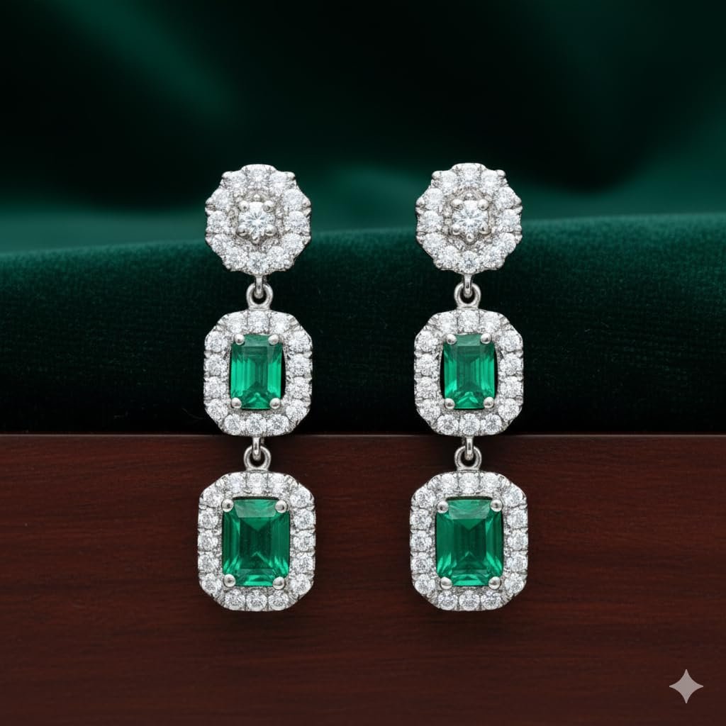 / Rhodium-Plated AD Jewellery Set | American Diamond Jewellery Set for Women
