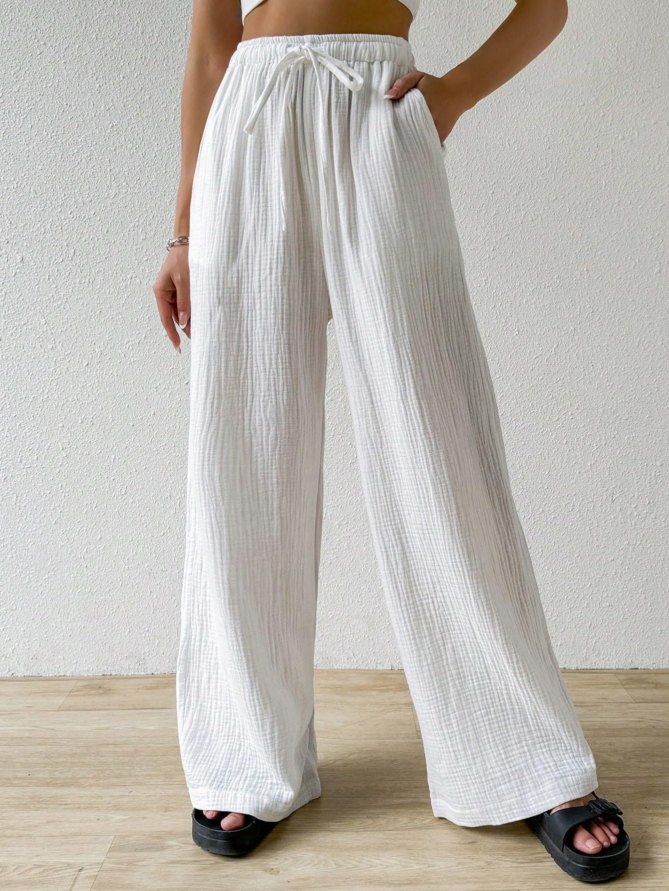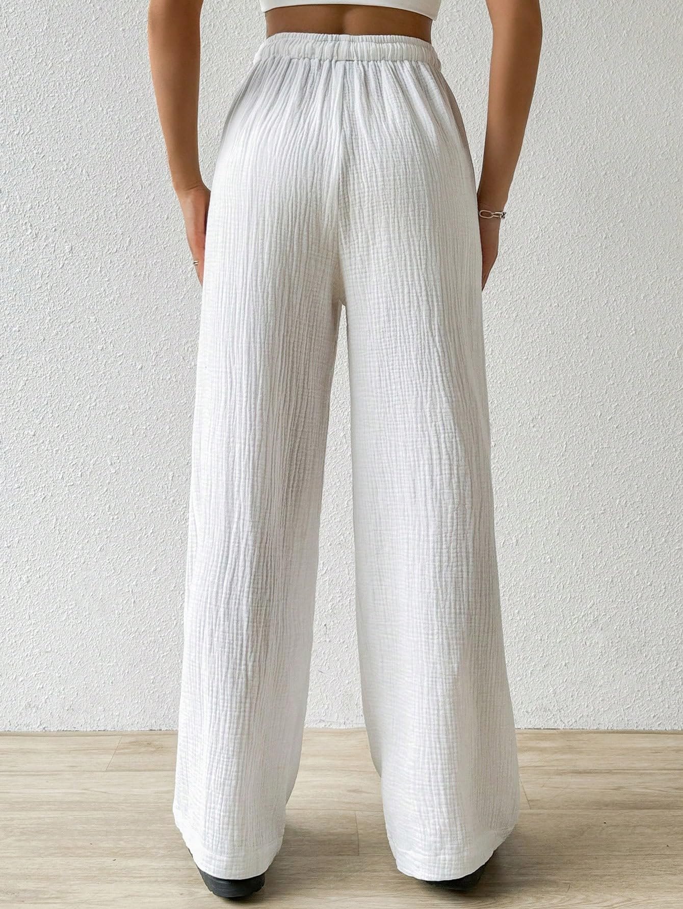 Loose Texture Wrinkle Fabric Drawstring Waist Long Pants