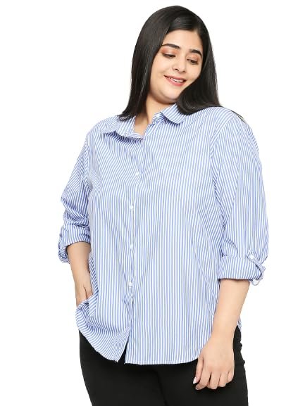 / Style Quotient Plus Women Blue and White Stripe Polycotton Regular Formal Shirt