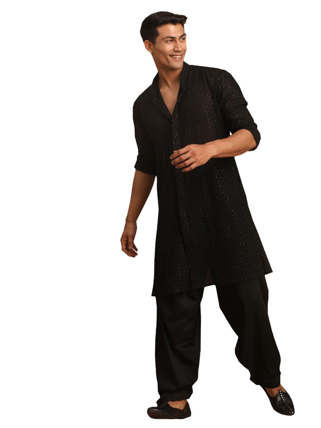 VASTRAMAY Embroidered Georgette Stylish Kurta Patiala Set for Men quantity